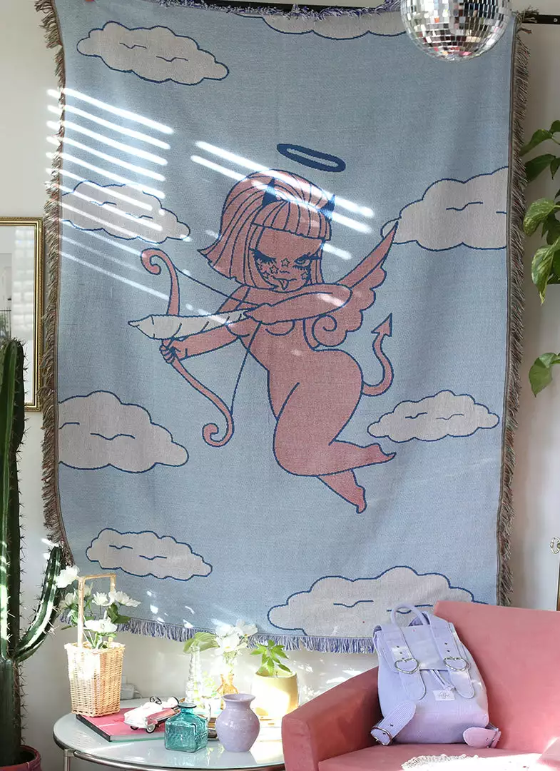 This large woven blanket features original Valfré artwork. Drape it across your bed/couch, hang it in your living space, or bring it to the beach.