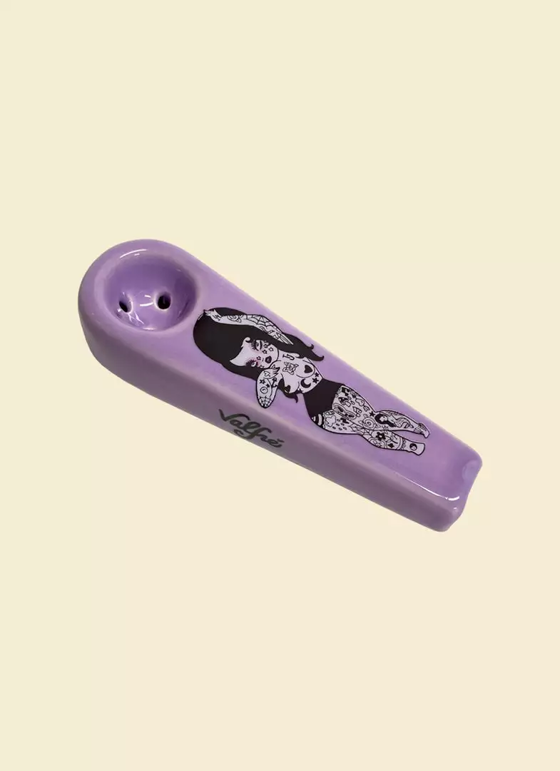 This handmade ceramic pipe features original Valfré artwork. Each pipe is unique, so colors and textures will slightly differ from piece to piece.