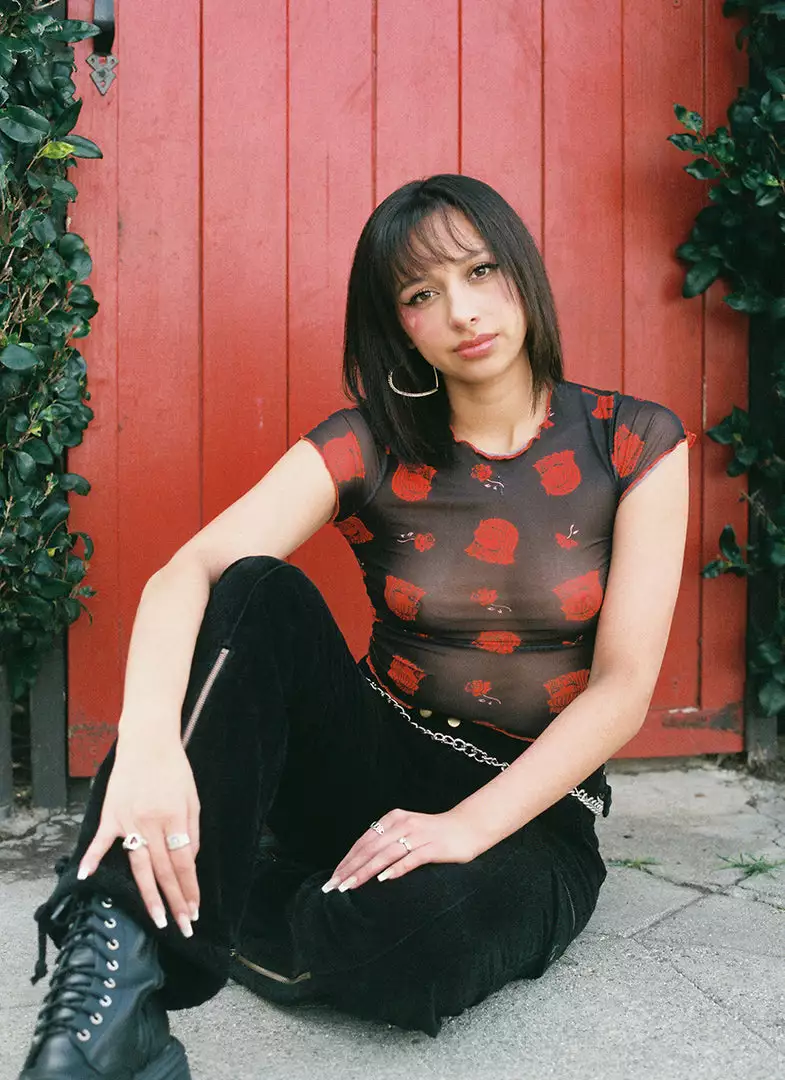This black mesh top features an all over Lucy pattern.