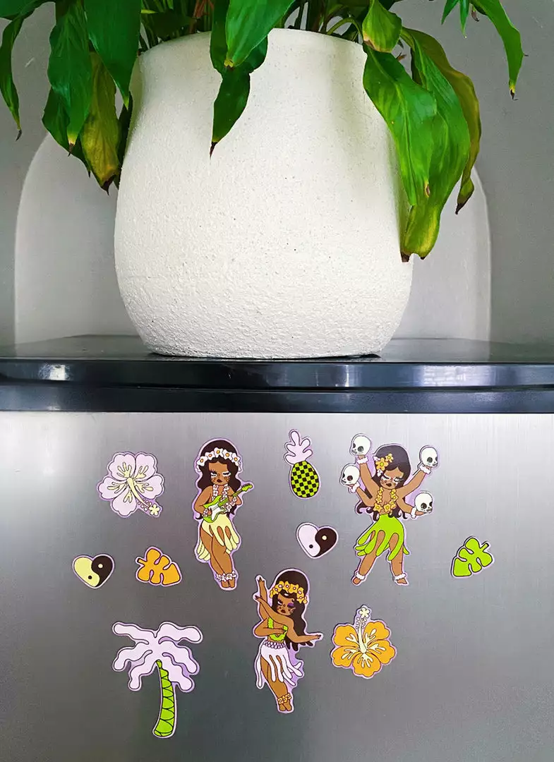This 11 piece magnet sets features 11 original Valfré drawings to style your fridge with.